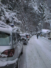 精算を行い、車の雪を落として(これくらい宿でやってくれても良いと思うのですがねえ)、10時40分に出発。しかし、車は遅々として進まない。このまま6時間経過(笑)。たぶん原因は関東圏の車が多かったので、真っ当な雪道装備がない車ばかりという所だったのでは? おかげで、昼食もとれず(そもそも買う場所がない)、宿屋で貰った饅頭と安藤さんのチョコレートで空腹を食いつなぐ羽目になるし、この日はどこにもゆけずに(注7)宇都宮で解散となりました。